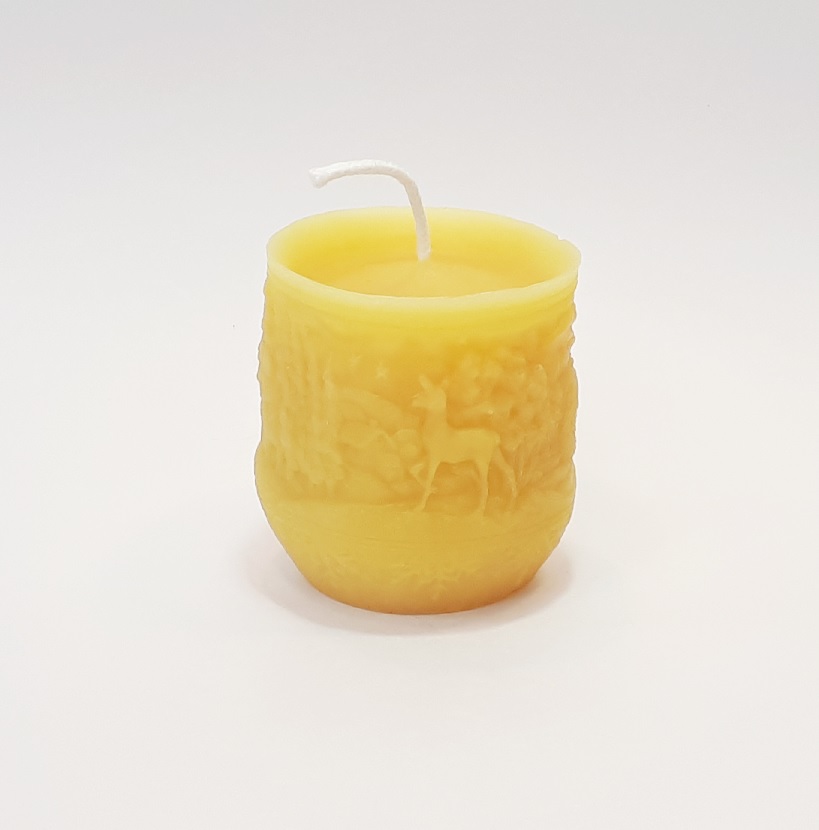 Our hand poured Beeswax Winter Scene Candle is a classic holiday favourite to have on the mantle. Glowing glimpses of a winter wonderland play around the outside, giving soft warmth to a chilly scene. Enjoy it’s glow or make it a yearly addition to your decoration collection.